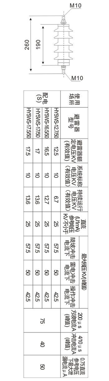 HY5WS-10KV 避雷器是用来保护电力系统中各种电器设备免受过电压损坏的电器产品,具有良好保护性能。因为氧化锌阀片的非线性伏安特性十分优良,使得在正常工作电压下仅有几百微安的电流通过,便于设计成无间隙结构,使其具备保护性能好、重量轻、尺寸小的特征。当过电压侵入时,流过阀片的电流迅速增大,同时限制了过电压的幅值,释放了过电压的能量,此后氧化锌阀片又恢复高阻状态,使电力系统正常工作。