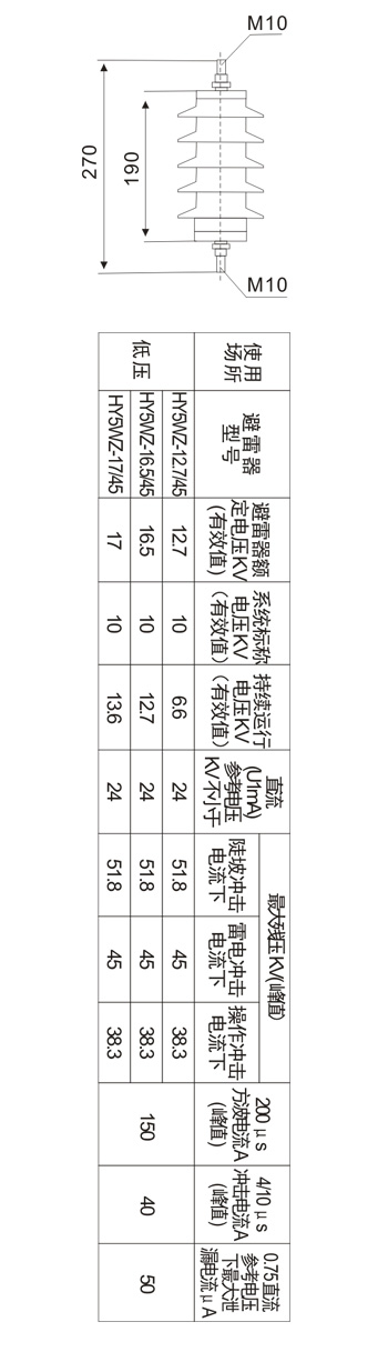 HY5WZ-10KV 避雷器系列