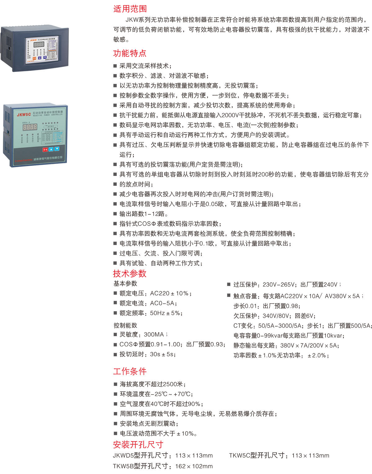 JKW系列智能无功功率自动补偿控制器