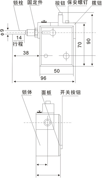注:A、B锁外形、安装尺寸相同操作方法:A、拨动拨钮 B、拉动手柄
