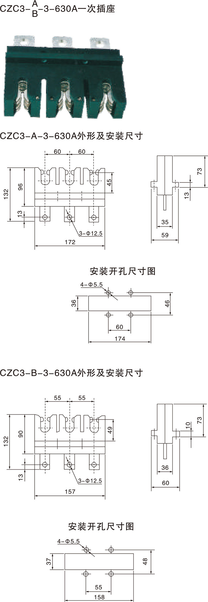 CZC3-A/B-3-160A、250A、400A 630A 一次插座