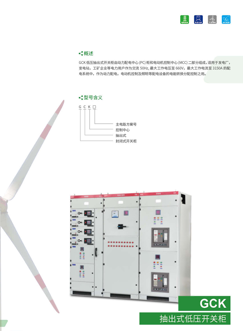 GCK低压抽出式开关柜广泛适用于发电厂、冶金轧钢、石油化工、轻工纺织、港口码头、大楼宾馆等场所作为交流三相四线或五线制、电压380V、660V, 频率为50Hz、额定电流为5000A及以下的供电系统中的配电和电动机集中控制之用。