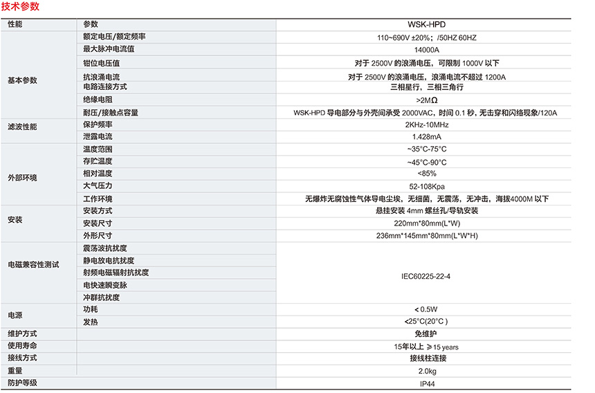 WSK-HPD完全符合IEC61000-4-5,IEC60939-1-2等标准