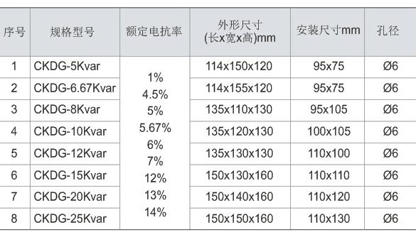 2.电抗率为:1%, 4.5%, 5%, 5.67%,6%, 7%, 12%, 13%, 14%;