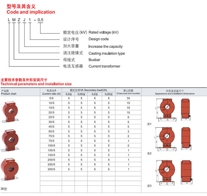 LMZJ1-0.5型电流互感器主要用于户内,供额定电压为0.5kV及以下,额定频率为50Hz的交流电路中作为电流、电能测量或继电保护用,产品采用浇注绝缘,采用安装底板固定安装。