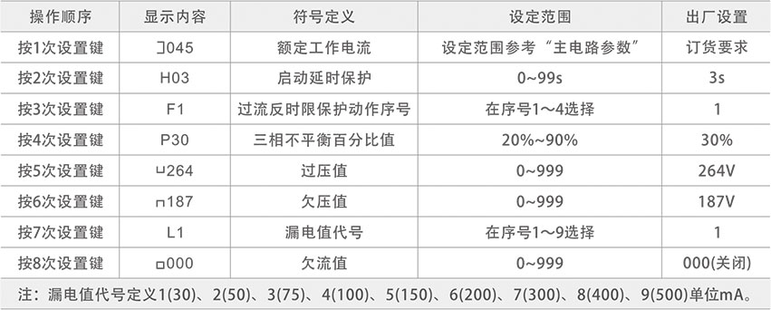 ◇设置键:空载时,按此键进入保护参数设定状态;