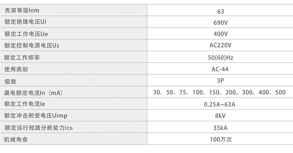 例二: XLSCPS(CBK)3-63H/M16/33ML30mA,表示一台63型 XLSCPS(CBK)3,分断能力35kA,负载性质:不频繁启动电机保护,工作电流16A,辅助信号要求是:3常开+3常闭+1故障+1短路,控制电压是220V,带漏电功能,漏电值要求30mA。