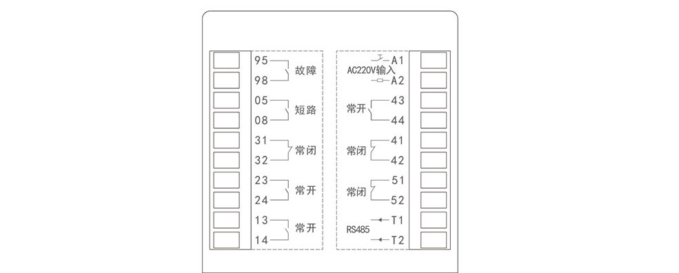 ◆短路保护功能:当主回路发生短路时, XLSCPS(CBK)3在2毫秒内脱扣,同时05-08输出报警无源信号