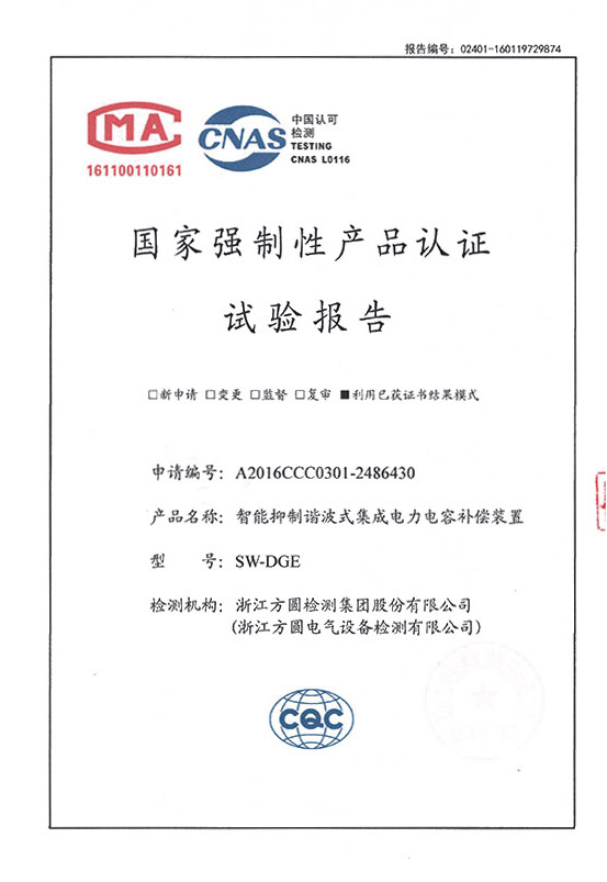 SW-DGE智能抑制谐波式集成电力电容补偿装置 试验报告
